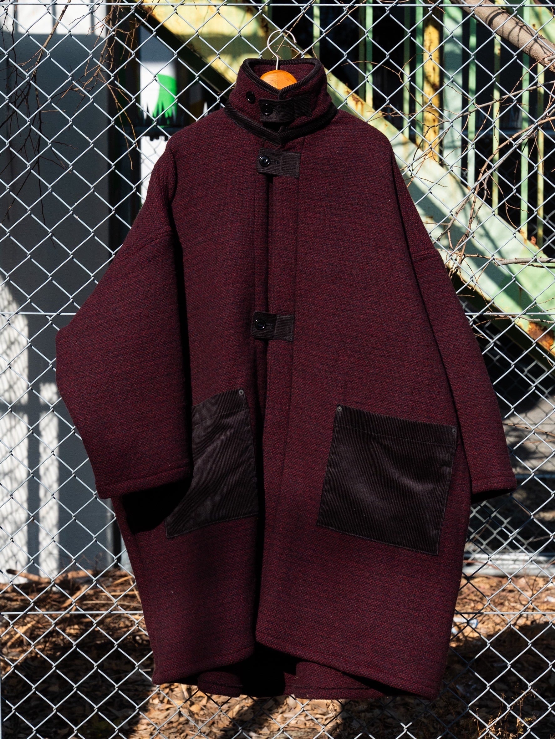 スタンドカラーのフリーコート。